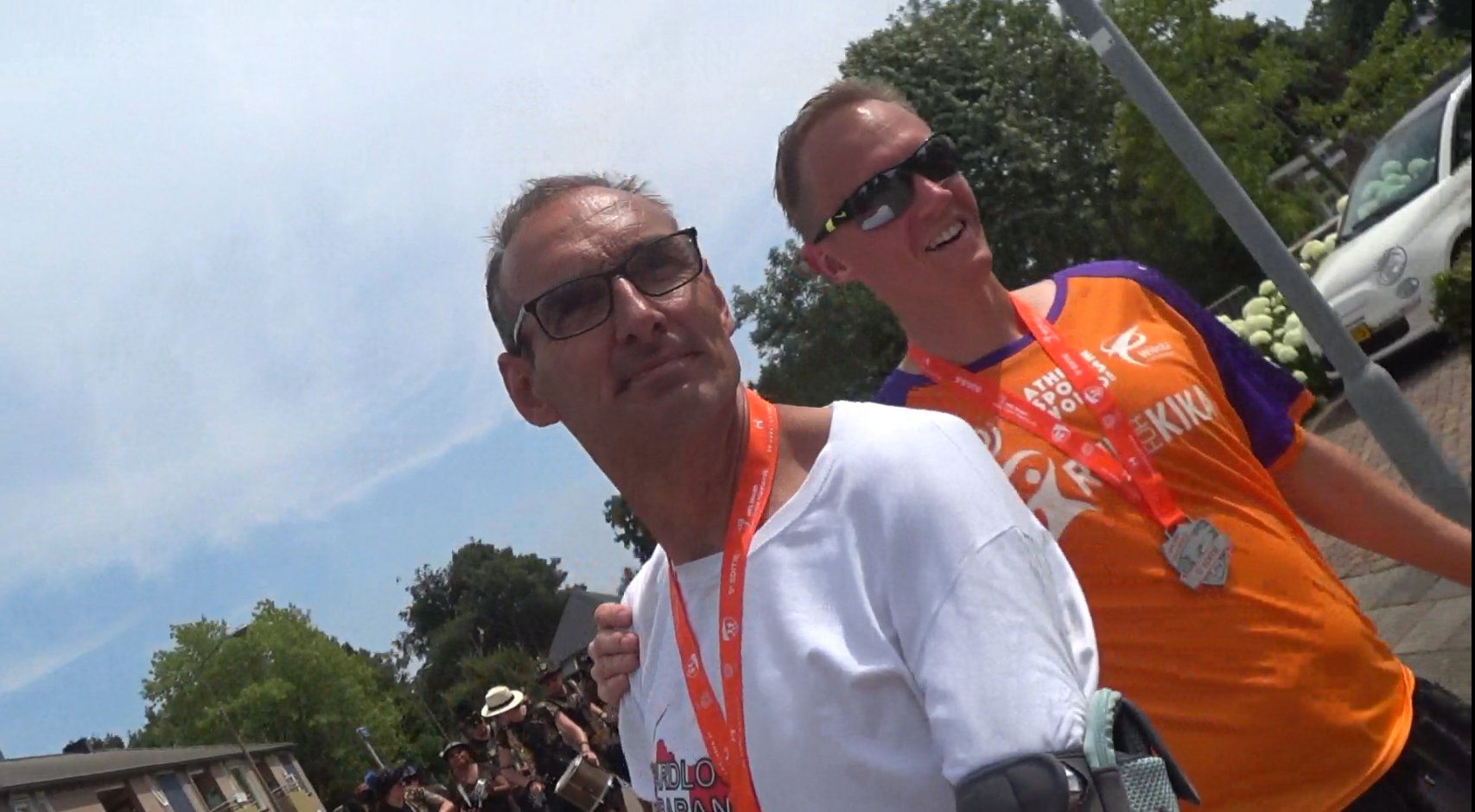 Na afloop kletste ik nog wat na met Alex Bekkers en Mari Durieux, hardlopers uit de regio. Alex is een van de organisatoren van de Omloop en ik complimenteerde hem met de organisatie en de keuze voor het hitteplan. Toen ik terugliep naar mijn auto kwam ik ook Adwin Mathon van Hardloop Brabant Wedstrijden op Facebook nog tegen. Die kom je ook overal tegen, gezellig!