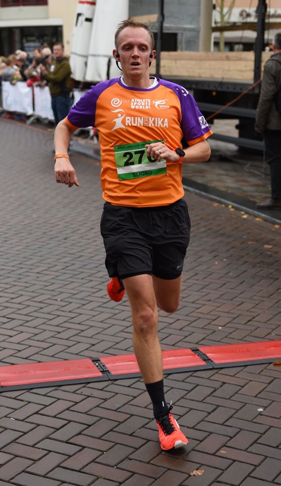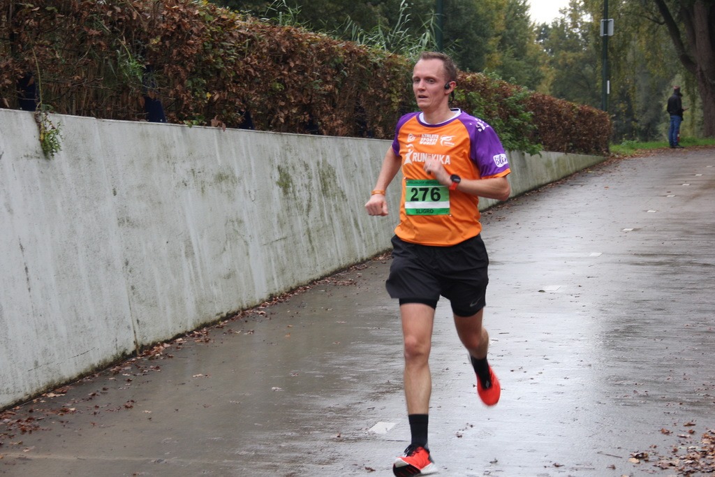 Kilometer 9 was een lastige. Na een flink stuk door het buitengebied en lange, rechte wegen, kwamen we nu weer in de buurt van het centrum. We moesten door een woonwijk en, waarschijnlijk om de afstand van 10 km te halen, maakten we veel bochten op natte straten. Ik liep op mijn New Balance Fuelcells. Fijne en vooral ook snelle schoenen, maar met veel minder grip dan mijn andere schoenen. Ik merkte dat ik iets voorzichtiger werd in de bochten, wat mijn tempo iets naar beneden bracht. Kilometer 9 werd daarmee mijn langzaamste kilometer, maar daarna had ik gelukkig nog wel genoeg over voor een fijne eindsprint. Ik vloog richting de finish en zag op de klok dat ik ruim om de 41 minuten had gelopen. Officiële eindtijd 40:32, dik een minuut sneller dan mijn oude PR. Ongelofelijk maar waar!