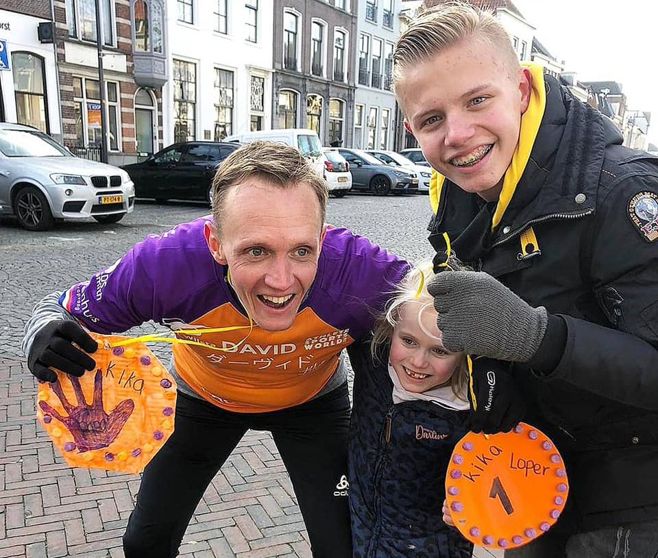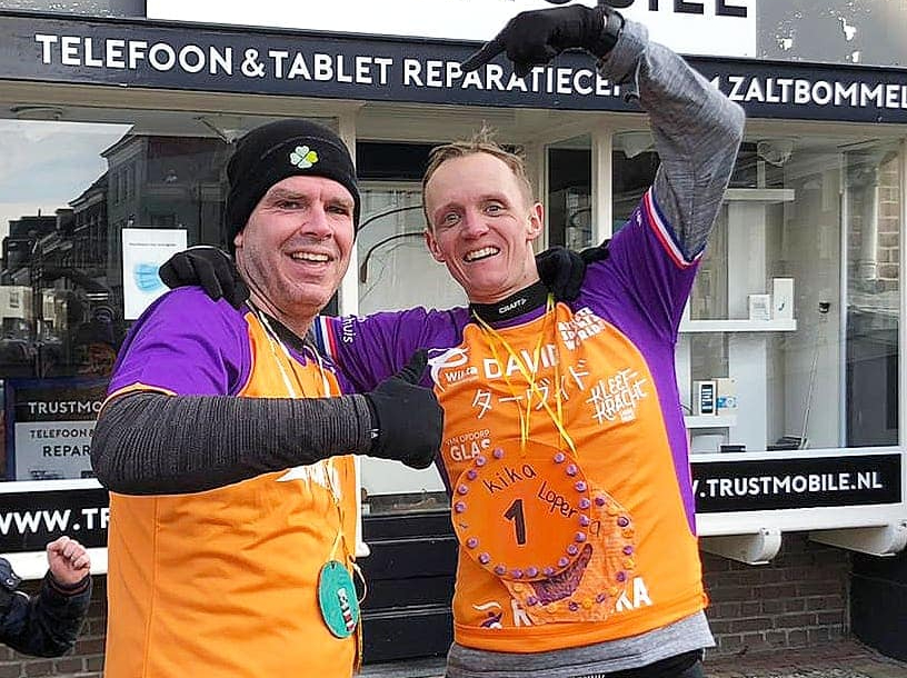 Terwijl Nederland nog steeds in een strenge lockdown is, stonden wij om kwart over 9 op zondagochtend al in de binnenstad van Zaltbommel. Het was rustig op straat wat mede kwam door de ijzige kou. Tja, een temperatuur van -2 is voor velen toch een reden om lekker warm binnen te blijven. Maar niet voor ons, wij hadden een missie te volbrengen. Dus liepen we op onze hardloopschoenen en in onze KiKa-shirts (natuurlijk!) naar de startstreep in het centrum. Geen startvak, geen startschot, geen rijen supporters, geen officieel evenement. Maar wel een startstreep en een uitgezette route. En een handjevol mensen in de groen-gele kleuren van de Two Rivers Marathon die ons succes wensten bij onze tocht. Wij hadden er zin in en we wisten wat ons te doen stond: uitlopen en onder de 4 uur finishen, in die volgende. Voor mij normaliter geen probleem, maar voor Björn die dus voor het eerst een marathon liep was dat anders. En dus waren de rollen vooraf goed afgestemd: ik zou gaan ‘hazen’ en het tempo bepalen, Björn zou volgen. Het plan was te gaan lopen met een pace van 5:30 min/km, waarmee we een marge op zouden bouwen onder de 4 uur. Een marge die we aan het eind van de race mogelijk nog hard nodig zouden hebben. En inderdaad, het werd nog spannend…