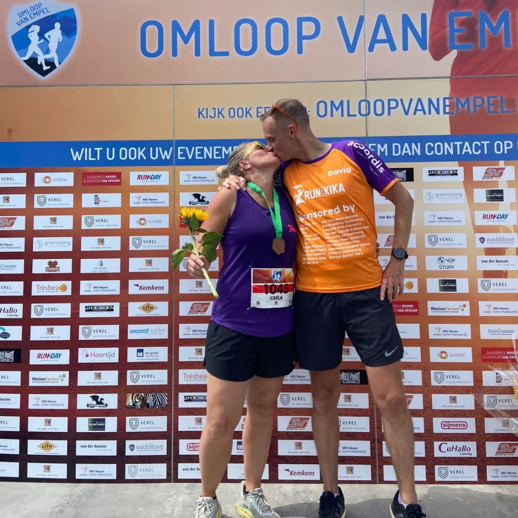 Mijn eigen 5k ging boven verwachting goed. Ik mikte op een tijd net onder de 20 minuten, maar met 18:45 liep ik zelf mijn 2e beste tijd ooit. Dat was dus een leuke opsteker. Daarna de 10k samen met Carla. Het was toen al goed warm, maar ook dit ging lekker. Carla liep vrij gemakkelijk naar een prima tijd. Knap gedaan.