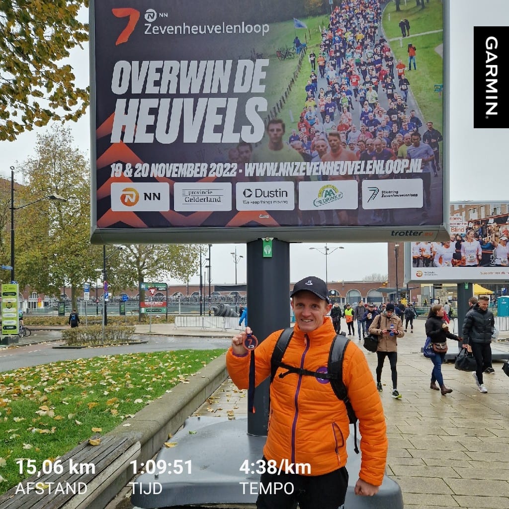 Sinds de ooievaarstrail had ik al de hele week last van mijn achillespees. De laatste twee dagen werd het werd minder, dus toch samen met Björn naar Nijmegen afgereisd en bij de Zevenheuvelenloop gestart.