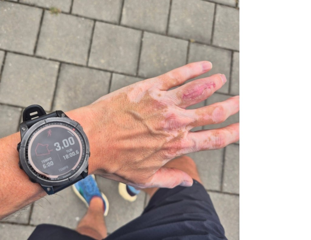 Vinger geneest zo goed, dat ik van de handtherapeut na 2,5 week alweer rustig mag gaan hardlopen. 🥳 Opdracht: niet te lang en hartslag <140 houden. ✅️ Nu de reactie op de vinger afwachten…